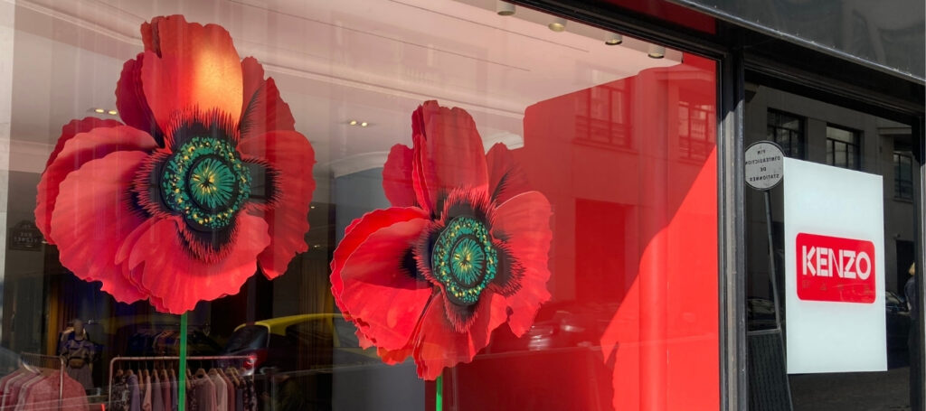 For the KENZO window displays, Cloé Vriet designed and handcrafted monumental paper poppies, fully shaped by hand. Their bold, vibrant colors combined with a rhythmic, graphic structure create a striking visual presence. This large-scale work, closer to architectural construction than delicate detailing, reveals another facet of the artist’s universe, where the power and monumentality of paper take center stage. Event followed by PR event with a handcrafted work on small paper poppies.